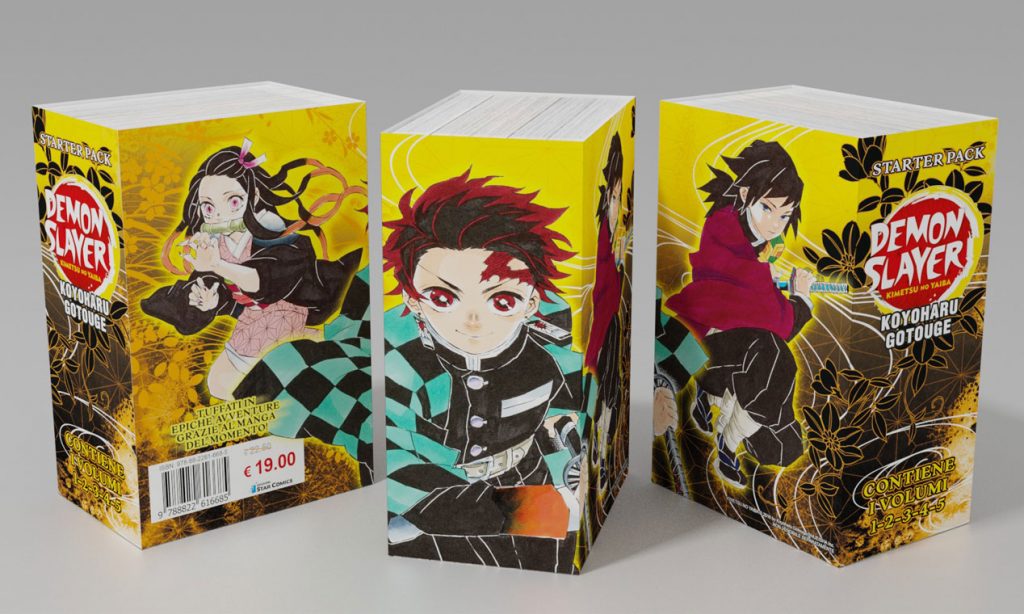 Wotakoi – Love is hard for Otaku, di Fujita. Panini Comics. - Demon Slayer – Kimetsu no Yaiba – Starter pack – i primi numeri del manga di Koyoharu Gotouge. Nel Giappone di inizio ‘900 la famiglia di Tanjiro viene sterminata da un demone. L’unica sopravvissuta, la sorellina Nezuko, è stata trasformata in un demone. Per salvarla e vendicare la famiglia, Tanjiro partirà per un’avventura mozzafiato! Uno dei manga più amati del momento qui proposto in un cofanetto che contiene i primi 5 volumi.