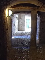 Nella porzione di sottopasso più antico di S. Maria del Monte, poco dopo l’arco gotico, si osserva un pilastrino medievale, forse trecentesco, qui reimpiegato per sorreggere un architrave che aggiunge un piccolo tassello alla difficile comprensione dell’assetto del monte in età romana. È un cippo funerario romano, purtroppo non facilmente leggibile, alto più di un metro e mezzo, dedicato a Sesta, Rufa e Veruncio. È lecito supporre che provenga da un’area prossima al luogo del suo riutilizzo…