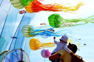 Tra le novità, la “Parata delle Creature”, spettacolare performance ispirata al mondo naturale, con grandi figure tridimensionali in dialogo con il volo degli aquiloni. Accanto agli spettacoli, spazio anche al circo contemporaneo nella Flying Circus Arena, con eventi per adulti e bambini.