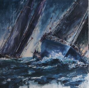 Unica e originale la visione dei dipinti di Ariti, nella concretezza dei pigmenti, in un divenire di vibrazioni che solo la spatola sa generare. Il rapporto tra luce e colore si impregna di nuove rilevanze nelle espressioni figurali legate alle onde, al vento e alla vela, così come nelle energie dell’invisibile insite nell’archeologia industriale o nei significati simbolici nel