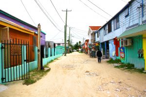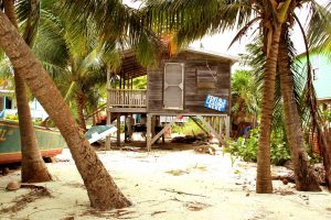 Sbarco sull’isola di CayeCaulker, a sud di San Pedro, nel Mar dei Caraibi, in una giornata troppo nuvolosa per il mio nuovo costume da bagno a fiori gialli.