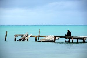 Mi avvicino con la cautela che si riserva alle Grandi Anime ma lui, senza staccare gli occhi e le dita dal dipinto, subito mi sussurra: «Heyguy! Oggi è una giornata senza sole, quindi senza mare per voi, ma vieni qui! È un giorno speciale per te.» Lo guardo senza capire e lui continua: «Prendi il tuo tempo, siediti e osserva la vita che passa lentamente. Sulla nostra isola non c’è rete per i vostri telefonini ma ci sono reti da pesca, reti di persone che si parlano, che si vogliono bene che lavorano insieme…» e allarga la bocca in un sorriso gigante.