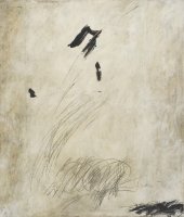 Istinto, materia, gesto ed essenzialità. Questi gli elementi fondanti della sua espressione su tela: i graffi, le ferite, gli scavi, le esili e tormentate pennellate che si presentano ai nostri occhi, sono come ostensioni di sé stesso su pareti candide e porose.
