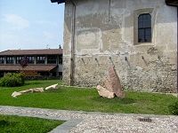 L'ingresso del ChiostroNovità dal Chiostro di Voltorre – Mentre prosegue la mostra dedicato all'artista, grafico, pittore ed insegnante milanese Giancarlo Iliprandi, lo spazio espositivo tra i più suggestivi della nostra provincia ha ospitato un innovativo workshop. Organizzato lo scorso fine settimana il laboratorio interattivo ha visto la ralizzazine di un'opera d'arte ambientale, tuttora visibile (fino al 31 maggio) nel cortile esterno dell'antico monastero benedettino. Massi di granito scelti e manipolati da Maurizio Russo grande artista che ha intrattenuto gli studenti accorsi numerosi per 'rubare i suoi segreti'.