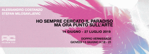 Varese – Proseguono le due mostre allestite alla Galleria Punto sull’Arte: “Ho sempre cercato il paradiso ma ora punto sull’arte”, installazione di Alessandro Costanzo e Stefan Milosavljevic, vincitori del Premio Speciale progetto Under 30 dell’ Arteam 2018, a cura di Martina Campese e Raffaella Ferraro e la