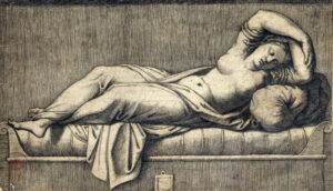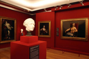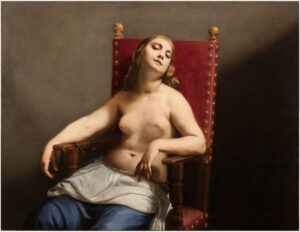 Durante il Rinascimento, l’immagine di Cleopatra inizia ad avere una certa fortuna nell’arte occidentale, come mostra una raffinata incisione di Marcantonio Raimondi della Galleria Sabauda nata dalla collaborazione dell’artista bolognese con Raffaello. Nel Seicento e nel Settecento la sovrana è protagonista di molte opere, nelle quali spesso è rappresentata nel momento della morte, come nel caso dei dipinti di Giovanni Giacomo Sementi (1625-1626 ca.), proveniente dalle raccolte viennesi del principe Eugenio di Savoia Soissons e ora conservata in Galleria Sabauda, di Giovanni Lanfranco (circa 1630) delle Gallerie Nazionali di Palazzo Barberini e Galleria Corsini, e di Guido Cagnacci (1660-1662) della Pinacoteca di Brera, oppure in relazione a figure storiche quali Giulio Cesare, Marco Antonio o Ottaviano Augusto, come il bel dipinto della pittrice Elisabetta Sirani di collezione privata modenese nel quale la sovrana mostra il prezioso orecchino di perle che scioglierà in una coppa di aceto per poi consumare la costosissima bevanda, alludendo all’episodio che sarebbe avvenuto nel sontuoso banchetto al cospetto di Marco Antonio raffigurato nella maestosa tela di Francesco Fontebasso (circa 1750) in prestito dal Palazzo Madama di Torino, e come il bozzetto di Claudio Francesco Beaumont raffigurante Cleopatra che si avvia verso il Palazzo di Cesare (1740), preparatorio per uno degli arazzi che costituiscono la serie