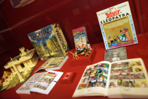 a dischi, fumetti e giochi da tavolo, spiccano le trasposizioni della vita di Cleopatra sul grande schermo, evocate attraverso locandine, fotografie e spezzoni di film, dall’epoca del cinema muto all’interpretazione di Elizabeth Taylor nella pellicola di Joseph Mankiewicz del 1963 fino a quella di Monica Bellucci nella commedia Asterix & Obelix – Missione Cleopatra del 2002.