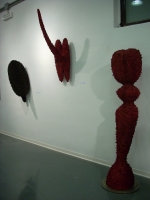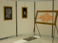 Le opere di Stefano CalderaraLente di ingrandimento – Tra i giovani artisti c'è chi ha scelto la strada della scultura: Stefano Calderara, con una riflessione sull'opera ceramica giocoso intrigo tra fumetto e gioco ludico creativo, accanto ad opere nate dall'attenta lavorazione dell'acetato. E' di Gionata Ranzoni l'imponente porta in terracotta al centro della sala espositiva, frutto di una riflessione, concettuale sul materiale e il suo valore naturalistico. A firma di Lorenza Soldà delicate e sinuose figure femminili sono nate dal sapiente gioco figurativo sulla danza e sull'ambiente dove l'aspetto cromatico plastico è dominante. Diverse le interpretazioni pittoriche proposte da Livia Carraro e Simone Berrini. Un gioco di contrasti astratti tra nero e oro nelle opere della prima, vivaci cromie e divertenti personaggi antropo-animali nelle tele di Simone. Si muovono nella sperimentazione fotografica Francesca Crocetti e Cristian Cremona. Francesca presenta recentissime sperimentazioni tra fotografia e nuovi materiali, mentre Cristian già attento a percorsi dell'incisione ora affronta la rielaborazione minimalista in un curioso gioco pittorico fotografico. Infine sono due artiste amiche tra loro a proporre una riflessione sul 'corpo': è Simona Muzzeddu a condurci, con costruite immagini fotografiche dentro a temi d'attualità come i rifiuti solidi, letti con l'occhio poetico dell'artista. Mentre Maurizia Frulli ripercorre tracce del corpo e del segno attraverso una personalissima e incisiva tecnica pittorica.