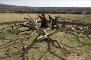 Alternando le svariate epidermidi ecosistemiche, si entra nella ripetizione di un gesto tenero, ragionato, che cerca di instaurare una relazione con la superficie degli elementi naturali. La seconda sezione, intitolata 3:2000 = 1460:x , è il racconto fotografico di un incendio in una vasta area della Sardegna di 12 mila ettari di terreni e boschi inghiottiti dalle fiamme e di un maestoso Olivastro Millenario di Montiferru, nella zona di Cuglieri, quasi completamente distrutto dalle fiamme.