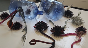 Enrica Borghi con Verde petrolio entra nel vivo della tematica della circolarità con una serie di lavori realizzati con materie plastiche alle quali viene donata una nuova vita. Una costante nella ricerca dell’artista è infatti l’idea di recuperare gli scarti, gli involucri degli oggetti comunemente utilizzati e successivamente diventati rifiuti, per reinventarli e trasformarli in opere d’arte. Anche la nuova serie di incisioni, ultimo lavoro realizzato dalla Borghi, prende avvio da una matrice costituita da materiale di scarto, che opportunamente lavorato con la tecnica calcografica, lascia la propria impronta sulla carta anziché scomparire tra i rifiuti. Attraverso le sue opere l’artista non solo ci mette di fronte alle potenzialità di tutta una serie di materiali che, esaurita la loro funzione diventano rifiuti, ma propone una riflessione critica su quelli che sono i nostri comportamenti di acquisto sconsiderato e conseguente scarto.