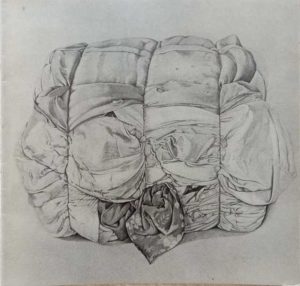 «Essendo un pittore e un esteta, vedevo una grande bellezza in queste balle, perché erano come delle sculture legate con i fili di ferro, con rigonfiamenti e imprevisti accostamenti di tessuti e colori, che sembravano voluti. e non mi sono fermato a questo. Dopo avere riprodotto l’oggetto usato, sono andato alla sua origine, per vederlo ancora “in uso” e per poi indagare il concetto del Vuoto, dell’assenza, che era quello che mi interessava: il sacchetto vuoto che racchiude una vita … ».