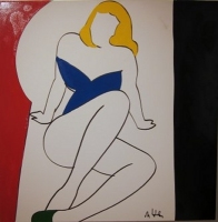 Opera di Rea MartiniI nomi noti – La panoramica prosegue e si estende anche geograficamente, esponendo opere di artisti di varia provenienza e di fama riconosciuta: si parte con una tela di Marco Lodola raffigurante una delle sue famose silhouettes femminili, per proseguire con Tommaso Cascella (Roma, 1951) e la sua pittura tridimensionale, fino alle rigorose e ritmiche campiture di colore su tavole lignee di Beppe Pepe (1955, residente a Alba), per giungere alla sperimentazione di materiali plastici di Salvatore Comminiello (Potenza, 1958).