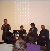 Zanella, Ricci, Sambini, ManganoIl riscatto della marginalità – È la direttrice della GAM Emma Zanella ad aprire la serata, con uno stringato riassunto, un punto della situazione, di un'edizione del Premio dedicata, per la prima volta e interamente, alla fotografia. La direttrice prende le mosse dai criteri di scelta dei fotografi selezionati, che hanno visto privilegiare artisti giovani che si servono della fotografia sia come unico mezzo della loro ricerca, sia come strumento utilizzato accanto ad altri media, come il video o la performance. Il discorso si sofferma poi, sul titolo del Premio, "Terzo Paesaggio. Fotografia italiana oggi", emerso dopo un confronto tra le opere degli artisti selezionati, lavori curiosamente accomunati da uno sguardo attento alle situazioni nascoste e meno evidenti della realtà, fotografie che dichiarano visivamente, un chiaro riscatto della marginalità.