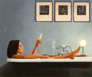 L’esposizione sottolinea il rapporto speciale fra Vettriano e il pubblico: un dialogo diretto, immediato, fondato sulla capacità di catturare gesti minimi e trasformarli in icone emotive. Le sue coppie, eleganti, distanti, enigmatiche, vivono in un tempo rallentato, in una dimensione sospesa dove l’amore è sempre sul punto di accadere o di sfuggire. È una pittura costruita sul non detto, sulle posture, sugli sguardi che evitano il contatto, sulle atmosfere che ricordano l’America di Hopper ma anche i set del cinema classico.