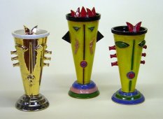 Forme particolari, inusitate, ispirate talvolta al mondo marino, ma rielaborate con lo stile inconfondibile del design: sono le opere scultoree di Ambrogio Pozzi, che si mostrano rigorose e studiate, ma senza perdere in freschezza e spontaneità. Come accade nell'opera "squalo", esso è un oggetto capace sì di richiamare la forma affusolata del pericoloso predatore oceanico, ma è altresì un puro oggetto di design posto lì, apparentemente senza nessuno scopo oppure con uno scopo multiuso. E questa caratteristica potrebbe adesso essere estesa anche ai "vasi sciamani", che richiamano i visi sciamani, creando un duplice effetto di maschera africana e di tazza da caffé.