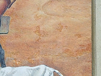 "In seguito, altro grosso intervento fu quando almeno due terzi dell'opera venne imbrattata da scritte oltraggiose con la vernice spray nera. In quel caso asportammo la vernice finale che avevo steso su tutto il dipinto, riuscendo a togliere il nero delle scritte".