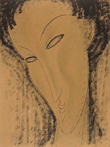 A. Modigliani, Testa femminileal pubblico dipinti e disegni provenienti da musei e collezioni importanti quali la Pinacoteca Giovanni e Marella Agnelli di Torino, l'Israel Museum, l'Orangerie di Parigi, la GNAM di Roma, la Pinacoteca di Brera e i Musei Civici di Milano. Accanto alle opere, la mostra presenterà un ricco apparato documentario composto da fotografie, epistolari, scritti autografi e materiali di studio che permetteranno l'approfondimento della personalità artistica di Modigliani e dei diversi contesti in cui negli anni la sua personalità è cresciuta e cambiata, da quello familiare livornese a quello artistico parigino. I documenti, che verranno esposti in originale, provengono dal Modigliani Institute di Roma.