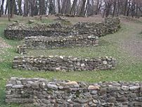 La zona residenziale – L'altro sentiero, verso sinistra, porta alla zona residenziale del castrum, dove, in origine, si trovavano le abitazioni civili. Oggi se ne conserva parzialmente una, probabilmente longobarda, che sfrutta come soglia una pietra lavorata che gli studiosi attribuiscono ad un edificio funerario di epoca romana.