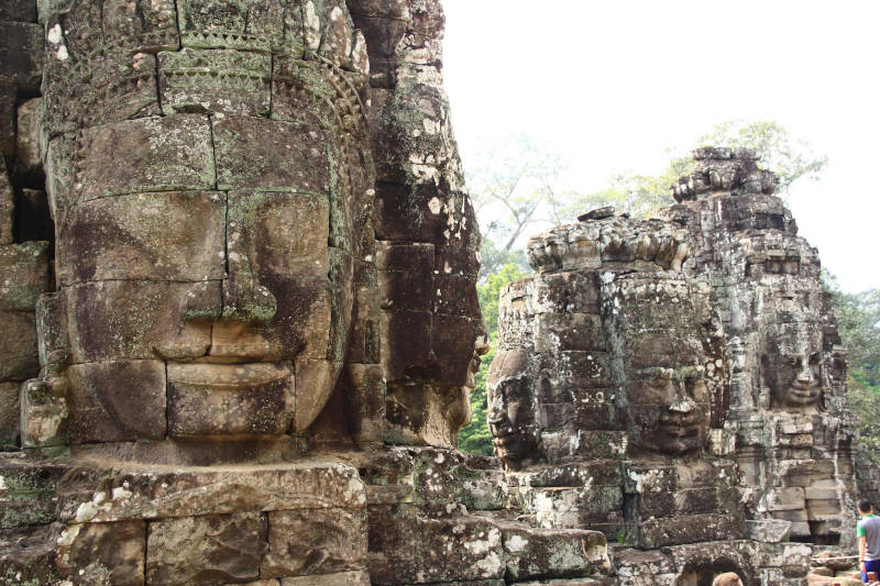 126 enigmatici volti sapientemente scolpiti sembrano colmare un vuoto di secoli lontani. Gli occhi di pietra seguono sempre i tuoi passi, mentre cammini, voltandoti indietro spaesata, forse ti sorridono. Il viso di Jayavarman VII, ripetuto all’infinito su ogni guglia del tempio, confonde ogni direzione, portando con sé, beffardamente, l’eternità del suo indecifrabile mistero.