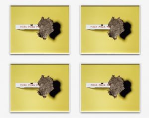 Una sottile linea ironica percorre i lavori fotografici di Annette Kelm (Stoccarda 1975), in mostra presso Giò Marconi con titolo “Springs”, a partire dalle quattro identiche immagini di “Pizza Pizza Pizza”, quasi una cadenza da peccato di gola, con uno strappo di corteccia a creare oblique ombre al fine di conferire un cadenzato equilibrio formale.