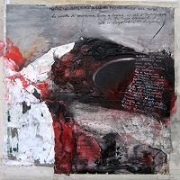 Un’opera di F. GrecoPensieri d'artista. Tre artisti a confronto per indagare il misterioso legame tra immagine e parola nell'arte contemporanea. Giovanni Sesia, Ferdinando Greco e Mirko Baricchi i prescelti per materializzare nelle loro opere la materia visiva all'eleganza degli appunti verbali. Di ispirazione letteraria anche il titolo della mostra, "de' pensieri suoi… annotazioni riflesse", che rimanda ai pensieri sparsi del poeta che assembla la sua opera e, in particolare, al Leopardi e alle sue note sparse che hanno dato vita allo Zibaldone. Un diario intimo che viene tradotto dagli artisti in annotazioni riflesse sul supporto pittorico tramite un legame inscindibile con la materia pittorica.