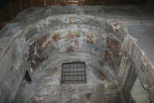 Ma la cosa stupefacente è che le stratigrafie hanno rivelato la presenza, sotto diverse mani di calce, di affreschi, realizzati nel corso di almeno due secoli – dal ‘400 al ‘600 – sull'intera superficie delle pareti e della volta. Una piccola parte dei dipinti era già visibile all'interno di un armadio, che ora è stato rimosso. L'esame di questi e dei saggi stratigrafici ha rivelato un ottimo livello qualitativo ed un buono stato di conservazione".
