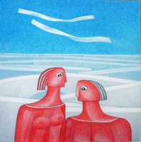 I leit motiv della sua pittura non sono cambiati. I suoi personaggi, figure manniquin non del tutto asessuate ma assai prossime all'artificialità, sono per lui emblemi del paradosso del mondo della comunicazione che ha tagliato i fili della comunicazione stessa tra gli umani.
