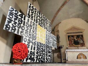 Solbiate Arno – La chiesa di San Maurizio ospita dal 19 aprile La Croce e il Rosario di Giorgio Piccaia. L’artista italo-svizzero riporta in provincia l’installazione già esposta a Velate e Varese nel 2021 e 2023. L’opera unisce simboli della tradizione cristiana alla sequenza di Fibonacci, cifra distintiva della ricerca dell’artista. La croce è composta da undici tele con numeri su fondo bianco, mentre il rosario prende forma in una sfera arancione di nodi. La presentazione, in programma alle 20.30 sarà accompagnata da un concerto del maestro Christian Tarabbia, dedicato alla letteratura organistica. Prevista anche la colonna sonora “Crucis”, realizzata da Giovanni Gaudio con Jo Trotta. L’installazione resterà visitabile durante gli orari di apertura della chiesa.