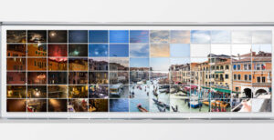 Venezia – 60.557 tasselli, oltre 500 ore di appostamento dal 2013 al 2023, più di 16.000 persone ritratte. Questi i numeri del progetto fotografico di Max Farina ospitato dal 7 febbraio al Fondaco dei Tedeschi e alla San Polo Art Gallery. L’installazione dal titolo The Rivus altus Cronorama – In 10 Years (allestita al quarto piano del Fondaco) rappresenta un vero e proprio “tentativo di esaurimento” visivo del panorama veneziano più fotografato, dipinto e conosciuto al mondo: la vista dal Ponte di Rialto e l’incessante flusso di persone che, a loro volta, l’osservano. In 10 anni, il fotografo ha registrato ogni cambiamento del panorama, concentrandosi sulla singola frammentazione che compone il paesaggio. 78 monitor si combineranno per formare una molteplicità di immagini dove la veduta è affidata al montaggio variabile, e modificabile quasi all’infinito, dei vari pezzi separati che compongono un paesaggio perfetto e instabile, affascinante e mutevole: contemporaneamente notte e giorno, alba e tramonto … Un’opera video con oltre 10.000 scatti, simili a puzzle, in cui le immagini non colgono più un momento preciso, ma divengono una prospettiva tracciata dallo scandire del tempo in divenire. L’inaugurazione è in programma il 9 febbraio alle 18. La mostra continuerà sino al 4 aprile e sarà visitabile tutti i giorni dalle 10 alle 19.30.