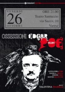 Varese – Venerdì 26 ottobre alle ore 21 “Ossessioni – Edgar Allan Poe” al Teatro Santuccio. Il percorso muoverà attraverso tre racconti del terrore dello scrittore: “Berenice”, “Il demone della perversità” e “Il cuore rivelatore” e sarà un viaggio nelle ossessioni dell’uomo. Con gli attori Alessandra Fiori, Daniela Sbrana, Simone Corà e Matteo Bezzecchi. La regia è di Valentina Maselli.