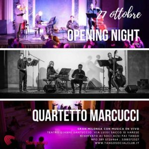 Il fine settimana proseguirà al Santuccio sabato 27: in programma l’’”Opening Night” dalle 22 alle 02: si ballerà il tango dal vivo con il Quartetto Marcucci, diretto dal carismatico Gianni Iorio, uno dei più grandi suonatori della fisarmonica tedesca “bandoneòn” in Europa.