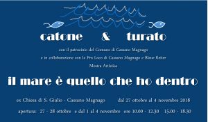 Cassano Magnago – “Il mare è quello che ho dentro” è la bi-personale di Massimo Turaro e Giuseppe Catone che da sabato 27 ottobre si apre all’ex chiesa S. Giulio. La matericità nei quadri e nelle installazioni di Turato incontrano la pittura istintiva e spontanea, dalla pennellata fluida di Catone. La mostra rimarrà in calendario sino al 4 novembre e sarà aperta al pubblico nei giorni 27 – 28 ottobre; dall’1 al 4 novembre dalle 10 alle 12.30 e dalle 15 alle 18.30.