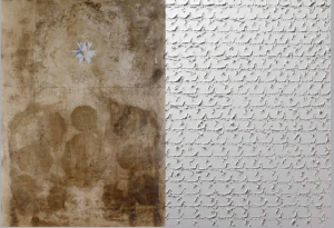 Busto A. – “Il velo del simbolo e del canto visivo. Lara Martinato e Alfredo Rapetti Mogol” è il titolo della nuova mostra allestita a Palazzo Cicogna, nell’ambito della rassegna “Uno spazio per l’arte”. L’esposizione, a cura di Duccio Trombadori è un dialogo intenso e poetico tra le opere dei due artisti, in cui parole e immagini si fondono e comunicano con silenziosa profondità. Il lavoro di Lara Martinato si addentra alla ricerca della spiritualità. Preparando la tela con gesso e argilla, l’artista ottiene una superficie scabra e irregolare sulla quale l’olio e la foglia d’oro creano cangianti effetti di luce, mentre le figure appaiono incerte, fantasmatiche, come se l’occhio riuscisse a coglierle solo per un istante prima che scompaiano. Alfredo Rapetti Mogol, paroliere affermato e autore di testi per i più grandi nomi della musica italiana, utilizza una tecnica particolare, detta impuntura, dove l’azione del dipingere si fonde con l’atto dello scrivere, e le parole iniziano ad essere segnate non solamente su fogli ma anche nelle tele. In mostra sono esposti anche due libri dell’editore bustocco De Piante (www.depiante.it), ciascuno con sovraccoperta realizzata dai due artisti. Fino al 26 giugno. Orari: martedì – giovedì 14.30–18; venerdì 9.30–13 / 14.30 – 18; sabato 14.30–18.30 e domenica 15–18.30.