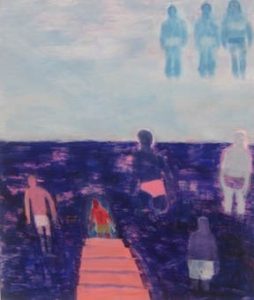 Milano – Cieli, distese d’acqua, bagnanti e nuotatori. E’ il mondo di Katherine Bradford esposto nella mostra Lifeguards allestita alla galleria Kaufmann Repetto. Ampie campiture di colore sfumature di blu che spaziano dal cobalto all’azzurro, e dall’oltremare al turchese, suddividono la tela in piani orizzontali ben definiti, mentre le variazioni di saturazione e tono evocano un’atmosfera sfuggente e insieme tangibile. In questi sfondi affiorano nuotatori sospesi in aria o intenti a tuffarsi, mentre altri sono riuniti a riva. I loro corpi androgini e privi di lineamenti sono abbozzati assumono posizioni fantastiche e assurde, effetto amplificato dalle manipolazioni imprevedibili della prospettiva pittorica. Ipnotico e al contempo rigoroso, il linguaggio visivo di Katherine Bradford si muove liberamente attraverso il confine fra pittura non oggettiva e figurativa, consentendo lo sviluppo di narrazioni che si intrecciano all’indagine di forma e colore. La mostra, negli spazi di Via di Porta Tenaglia prosegue sino al 9 ottobre. Orari: martedi – sabato 11–19:30.