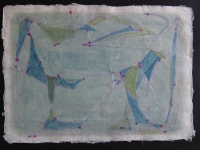Casa Paolo a Brezzo di Bederogrovigli, intrecci, che trovano spazio in un fondo indefinito, come il tempo, come il mondo, come il cosmo. Simbolico e irregolare anche il supporto: carta di riso thailandese, soffice, resistente, assorbente, trasparente. Gli effetti che ne derivano dal dialogo con la liquidità del colore acquistano un gusto affascinante.