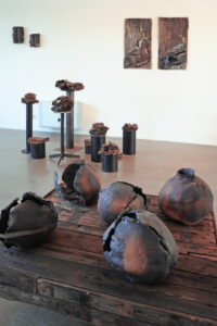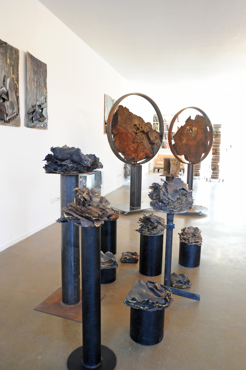 Le sculture, soprattutto quelle di grandi dimensioni mostrano, attraverso accostamenti di materiali e composizioni, il sottile equilibrio fra leggerezza e potenza, un invito a riflettere sulla fragilità della natura e sulla necessaria salvaguardia dell’ambiente.