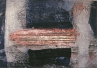 A. Vanzini, Quel che resta del giornoAppena percettibile – Una caratteristica di questi lavori è l'ausilio della carta. Un modo che Vanzini usa per muovere la superficie del supporto e uscire così dalla bidimensione del supporto. Piccoli collage con carte diverse, ma anche colle e stucchi che alterano l'andatura della tela danno un ritmo inedito e rendono le opere più suggestive. Spiegano gli organizzatori della mostra: "Le prime tele di questa serie sono più gestuali e segniche mentre gli ultimi lavori sono più meditativi e armonici.