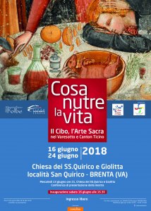 “COSA NUTRE LA VITA” sabato 16 giugno alle ore 16.30 presso la chiesa dei SS.Quirico e Giolitta di Brenta sarà inaugurata la mostra organizzata dal Vicariato di Cittiglio e aperta fino al 24 giugno. La mostra, nata nel 2015 in occasione di EXPO, venne realizzata da alcuni allievi allora frequentanti il Liceo Sacro Monte di Varese in collaborazione con il Centro culturale M.Kolbe con lo scopo di guidare i visitatori lungo un percorso storico/artistico che portasse a riflettere sulla vera natura dell’essere umano il quale non è fatto solo di bisogni materiali, ma anche di bisogni spirituali. I ragazzi che quest’anno accompagneranno i visitatori in questo straordinario percorso saranno gli studenti del Liceo “V.Sereni” di Luino.