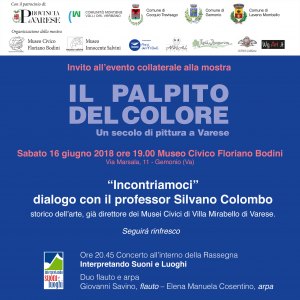 Il 16 giugno al Museo Civico Floriano Bodini di Gemonio è in programma la prima delle manifestazioni collaterali alla mostra su più sedi “Il palpito del colore. Un secolo di pittura a Varese”. La serata inizia alle 19 con “Incontriamoci”, dialogo con il professor Silvano Colombo, storico, critico d’Arte, già Direttore dei Musei Civici di Villa Mirabello di Varese e presenza fondamentale nel panorama culturale del nostro territorio. Seguirà un piccolo rinfresco a buffet e, alle 20.45, il concerto per flauto ed arpa di Giovanni Savino ed Elena Manuela Cosentino per la rassegna Interpretando Suoni e Luoghi, cui il Museo Bodini partecipa per il terzo anno consecutivo.