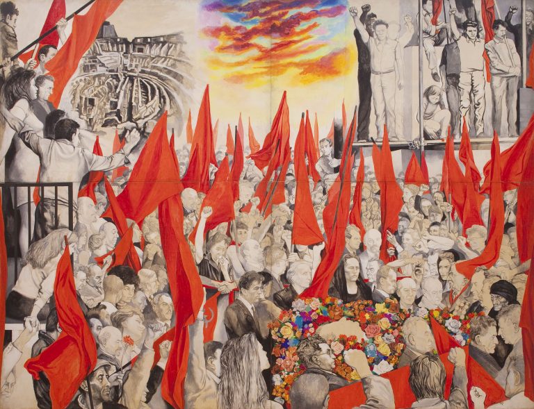 Renato Guttuso ha tracciato la linea del realismo italiano, pennellando, con la sua calda mano mediterranea, corpi di braccianti in lotta e camice rosse garibaldine, masse di contadini, intenti a occupare le terre, e comizi di quartiere. Una chiara vocazione politica e una marcata impostazione ideologica connotano il Maestro di Bagheria, comunista, senatore della Repubblica dal 1976 al 1979 e autore del quadro-manifesto della sinistra italiana del secondo Novecento: i «Funerali di Togliatti».