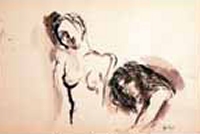 Guttuso, 'Nudi', 1940Il sottoteatro – Consueto luogo espositivo, sarà il sottoteatro ad ospitare le opere dei maestri in una mostra permanente per tutte le serate della manifestazione ispirate all'opera 'Il piacere' di Gabriele D'Annunzio. L'Eros del Corpo-Il Colore della Natura è il file rouge che guida lo spettatore. 17 gli artisti contemporanei coinvolti con fotografia, pittura, scultura, performance, videoproiezioni, installazioni. Tra quelli storici, tre artisti varesini sì, ma conosciuti su ampio raggio. Floriano Bodini, più noto forse per i lavori a tema sacro, è presente qui con un'opera scultorea, una coppia di amanti espressione di quel suo primo periodo di produzione legato al Realismo Esistenziale, presentata accanto ad una scena erotica del ferrarese De Pisis. Di Renato Guttuso, 'artista ormai internazionale', precisa Marcello Riccioni, sono esposti cinque esempi di chine su carta con nudi solitari, di collezionisti privati. "La scelta di queste opere deriva dal tema della solitudine – specifica il curatore – inizio della rieducazione dei sensi". In mostra anche due acquerelli conservati alla Civica Raccolta Disegni di Salò, eseguiti da Luigi Broggini. Il tema è sempre il nudo, soggetto giocato tra forma e colore, tra realtà e sensi.