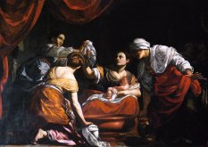 Simon Vouet, Natività della Vergine, 1620A margine della mostra in corso alla Pinacoteca Zust di Rancate, gettiamo un rapido sguardo a volo d'uccello sul clima pittorico che ha caratterizzato gli anni dell'opera di Giovanni Serodine (1600-1630). La rivoluzione naturalistica, avviata a Roma verso il 1590, costituì per i seguaci di Caravaggio un polo di attrazione ricco di fermenti innovatori di cui si fecero interpreti originali. Il naturalismo, inteso non come piatta descrizione o univoca imitazione dal vero, ma come sintesi nuova ed esperienza conoscitiva, provocò una vera revisione del linguaggio figurativo. Caravaggio, a differenza dei Carracci, non ha una schola vera e propria.