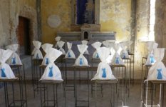 Giugi Bassani, di quello scritto, ne concepisce l'essenza, stabilendone forma e peso, celando taluni pensieri in 21 sacchetti bianchi, posti su piedistalli e con le sagome azzurre di angeli.