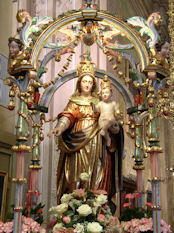 Finalmente, dopo una decina di anni di processioni senza manto, la bella statua della Madonna col Bambino sarà nuovamente ricoperta dal suo prezioso piviale, ritornato integro e splendente dopo un lungo restauro eseguito presso il Laboratorio Restauro Tessili Antichi dell'Abbazia Benedettina "Mater Ecclesiae", Isola di San Giulio, Orta.