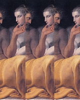 tempo, ma di cui principalmente è stato e continua ad essere regista e attivo costruttore. Il collezionista-catalogatore ed assemblatore di riproduzioni di opere d'arte presenti in decine e decine di musei italiani ed europei prende coscienza del proprio operato? Sì, si rende conto con questa dichiarazione di non essere più solo un semplice catalogatore, un collezionista ed un assemblatore, ma di essere il fautore, anzi il direttore della grande immagine che con aria beffarda propone al pubblico attraverso l'immensa "Quadreria d'Arte", un'immagine specchio della cultura visiva, della memoria artistica insita nella mente dell'artista e in quella di molti di noi, risvegliata dall'incontro con le opere di Bravi.