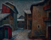 'Paesaggio di Ligurno', 1940Lavori al Frattini – Secondo la testimonianza di Massimo Conconi, docente al Liceo Frattini, i cartoni di Carlo Cocquio, giacevano in uno stato di abbandono. E' così, che per poterli mostrare nella loro interezza e particolarità, sono stati restaurati. "Parlando con Paolo Baretti, mi sono reso conto che erano numerosi i giovani studenti che avevano da saldare debiti formativi – spiega Rolandi – mi è venuto così in mente di far restaurare a loro i cartoni del pittore, sempre sotto la guida degli insegnanti. E' stata sicuramente un ottima occasione per loro e dal canto nostro un'opportunità di conservare il patrimonio artistico". La relazione di questi lavori sono riportati nel catalogo della mostra curato dallo stesso Massimo Conconi e Renata Castelli. Un testo, 'La vera arte sa parlare tutte le lingue', che descrive l'artista che era Cocquio, sulla linea di Carrà, Morandi, Sironi, scritto da Ettore Ceriani con il contributo di Serena Gecchele autrice anche delle note biografiche.