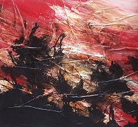 rossi, i bruni. Quello che non cambia, invece, è l'ispirazione tratta dalla natura: Riccardo in maniera imprevedibile tramuta "un ricordo istantaneo di sentimenti, emozioni, suoni, parole e colori di un paesaggio visto ieri" in un paesaggio astratto di forme e gesti, dirompente nella sua energia, nelle emozioni che sa suscitare. Il ricordo si fa ancor più pressante laddove in alcune tele l'artista inserisce direttamente degli oggetti reali come cassette musicali, assi di legno, carte stropicciate, diapositive e ritagli di giornale. Accresce dunque la componente materica e cromatica dei primi piani che idealmente rappresentano lo spazio simbolico dell'osservatore.