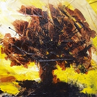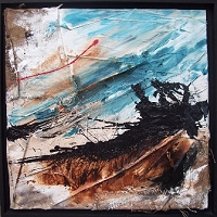 Un'altra opera dell'artistaNel cassetto della memoria – Ma se l'impronta informale rimane ben riconoscibile, molti altri sono gli elementi che dichiarano l'avvenuta evoluzione dell'artista: alle tonalità cupe e giocate su pochi colori si sono sostituite cromie accese e vivaci, come l'azzurro, il giallo, il viola. Inoltre l'elemento figurativo, il rimando alla realtà, all'ispirazione tratta dalla natura, è molto più riconoscibile, attraverso sagome nere che propongono drammatiche visioni in controluce. In alcune opere scelte per la Cascina dell'Arte l'approccio è anche più fresco, leggero, con più pittura e meno materia, in altre invece, predomina il richiamo seducente delle superfici mosse, delle crettature alla Burri, dell'urgenza del ricordo che affiora tra gli stati densi della vernice, sotto forma di stralci di parole lontane, di diapositive, addirittura di un intero libro, tirato fuori dal cassetto della memoria. Cavalleri affascina lo spettatore con l'estrema capacità tecnica delle sue textures di colore, con il dosato equilibrio tra gesto e composizione, con la suggestione di un paesaggio interiore fatto di ricordi ed emozioni.