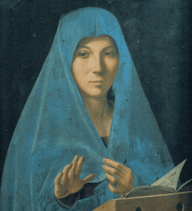 herà di vivere, e colta nei gesti più consueti e semplici delle mani, capaci tuttavia di rendere l’intensità del momento, merito della sapientissima regia di spazi e di luci. Che aggiungere a quello che aveva scritto Marco Boschini, vedendo l’opera in un palazzo veneziano, nel suo “Navegar pitoresco” pubblicato nel 1660: “Diria che d’Antonelo da Meßina/Ghé vna Madona con un libro avanti/Che de sto mondo i studij tuti quanti/No’ i ghà certo vna cosa cusi fina”? Davvero nulla.