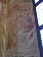 "In un periodo imprecisato, tra il 1440 e il 1800, gli affreschi furono ricoperti di calce, una misura adottata di frequente, per motivi igienici."